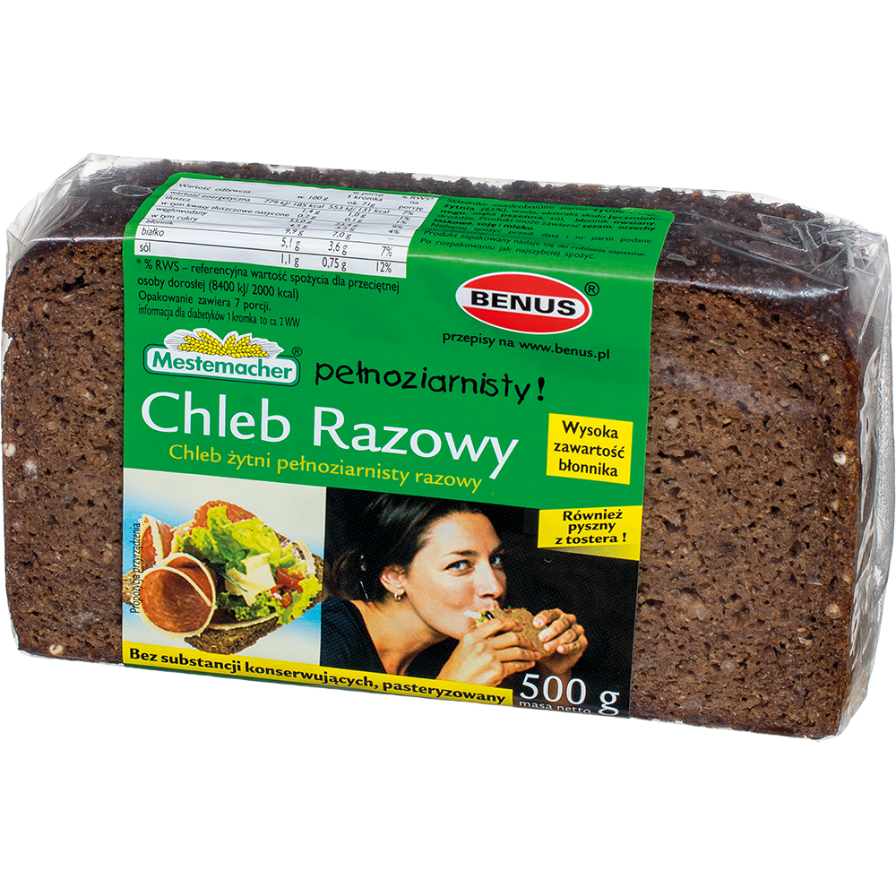 Chleb Mestemacher Razowy Pełnoziarnisty 500g Benus